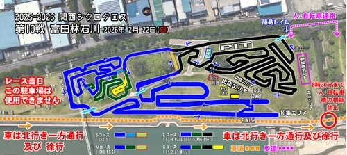 開催情報 2026.1.18(日) 関西シクロクロス 第8戦 希望が丘 滋賀県野洲市 希望が丘文化公園 Googleマップのアプリ・ページで開く↗ レース時間割 見るだけでもぜひお越しください!! 主催者から参加者へ事前に送付される案内はがき等はありません。 参加者から…